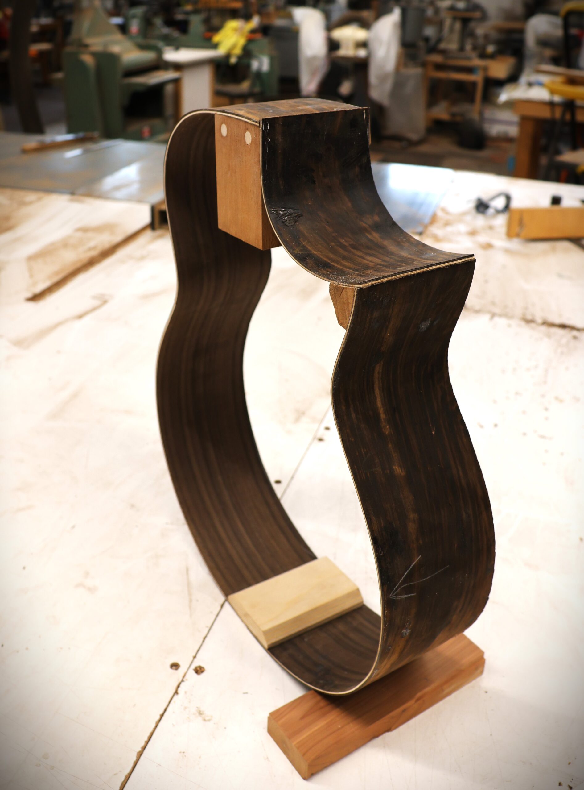 Fitting of the 3 rim pieces to the mold before gluing heel block and tail block